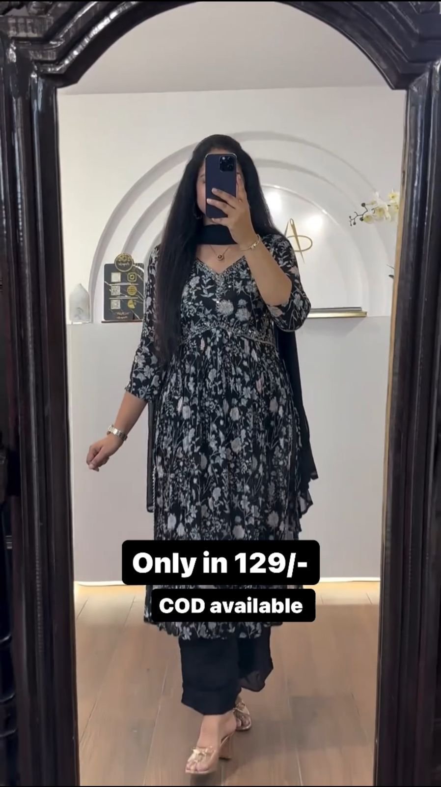 Black Color Floral Print Suit Set
