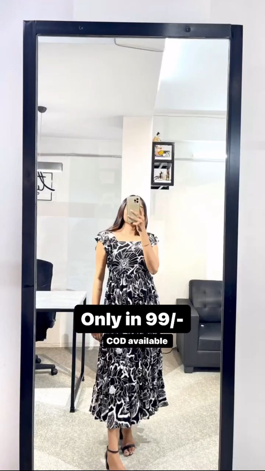 Black Color Printed Long Knee Length Dress
