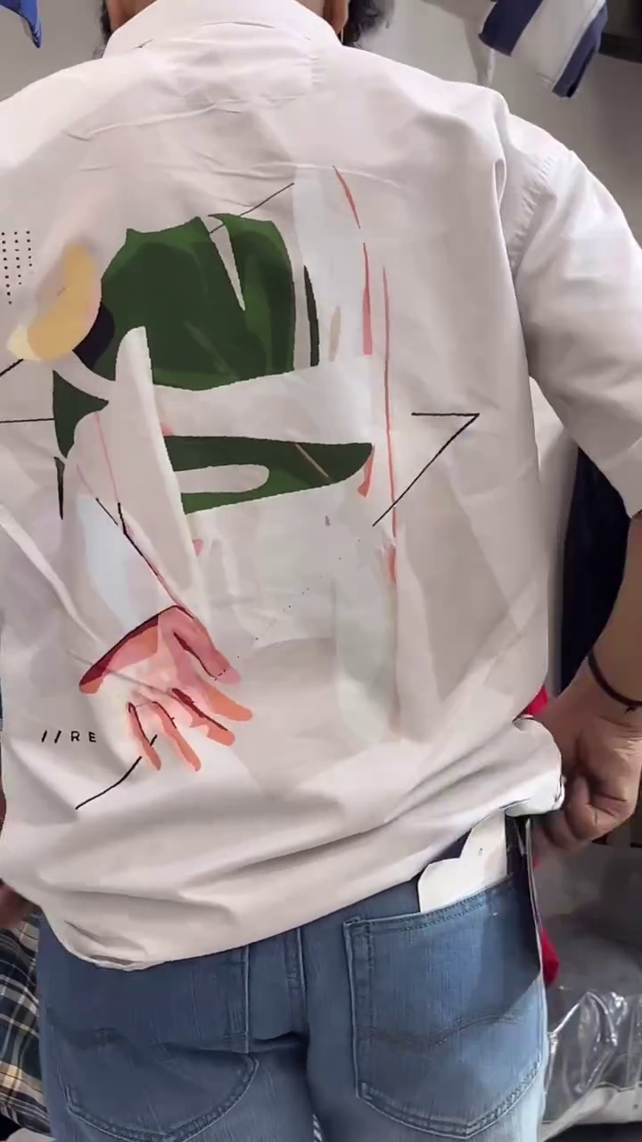 The back of the shirt carries a large abstract print that continues the artistic theme, making this piece visually impressive from every angle. This dual-side design makes the shirt look premium and well-designed, ensuring it doesn’t feel plain even when viewed from behind. The artwork has a modern, creative aesthetic that appeals especially to younger fashion-forward audiences.