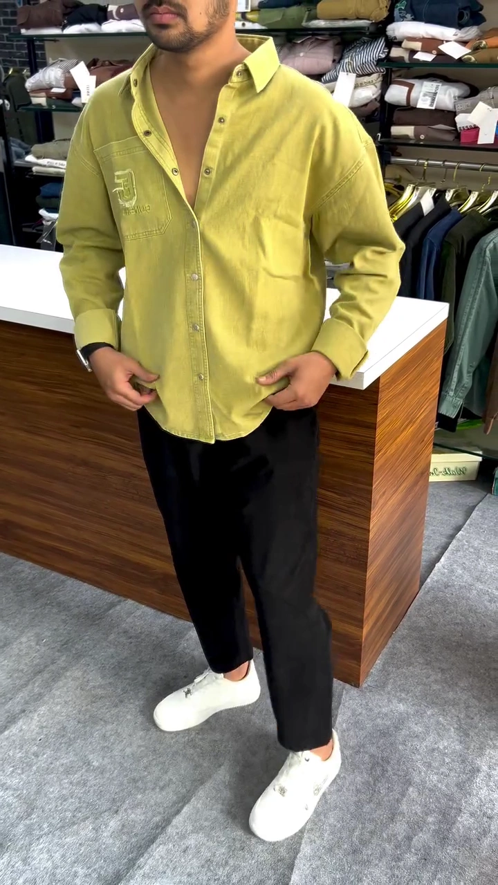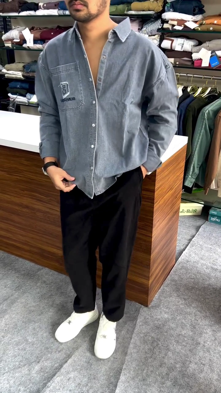 Upgrade your everyday style with this premium vintage wash oversized shirt, designed for men who want a modern streetwear look with ultimate comfort. The washed cotton fabric gives the shirt a soft, slightly faded vintage finish that adds character and style to any outfit. This shirt features a relaxed oversized fit, making it perfect for casual outings, street fashion, weekend wear, and everyday styling. The embroidered chest logo and bold back design give it a trendy statement look that stands out effortlessly. Pair it with jeans, chinos, or casual trousers and sneakers for a stylish street-ready outfit.