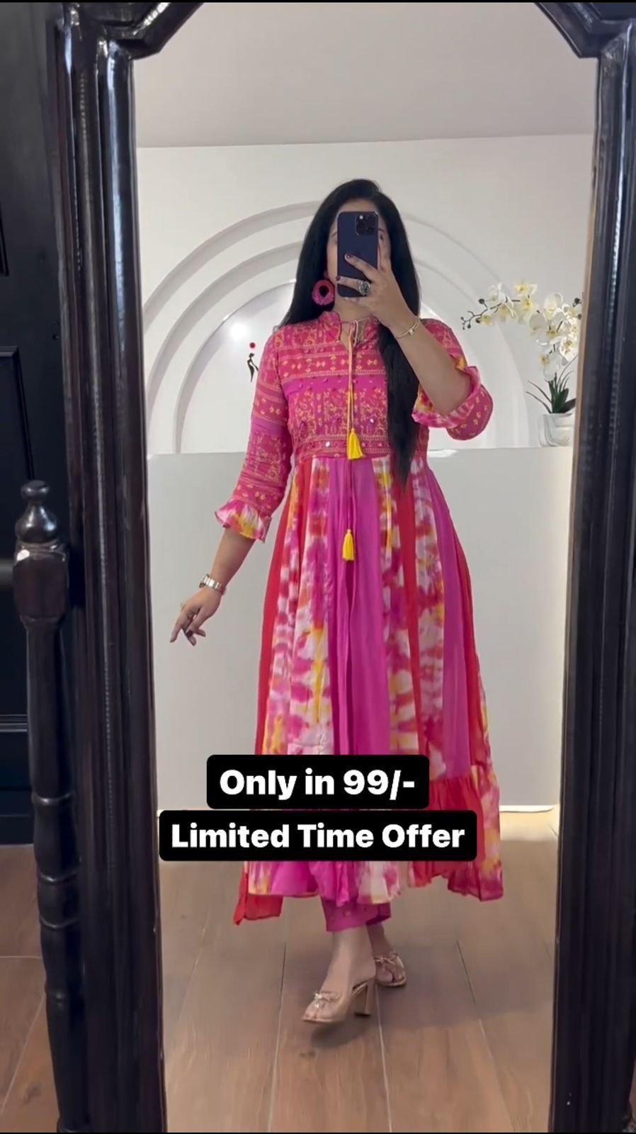 Orange Stains Organza Printed Anarkali Gown With Pant & Dupatta Set