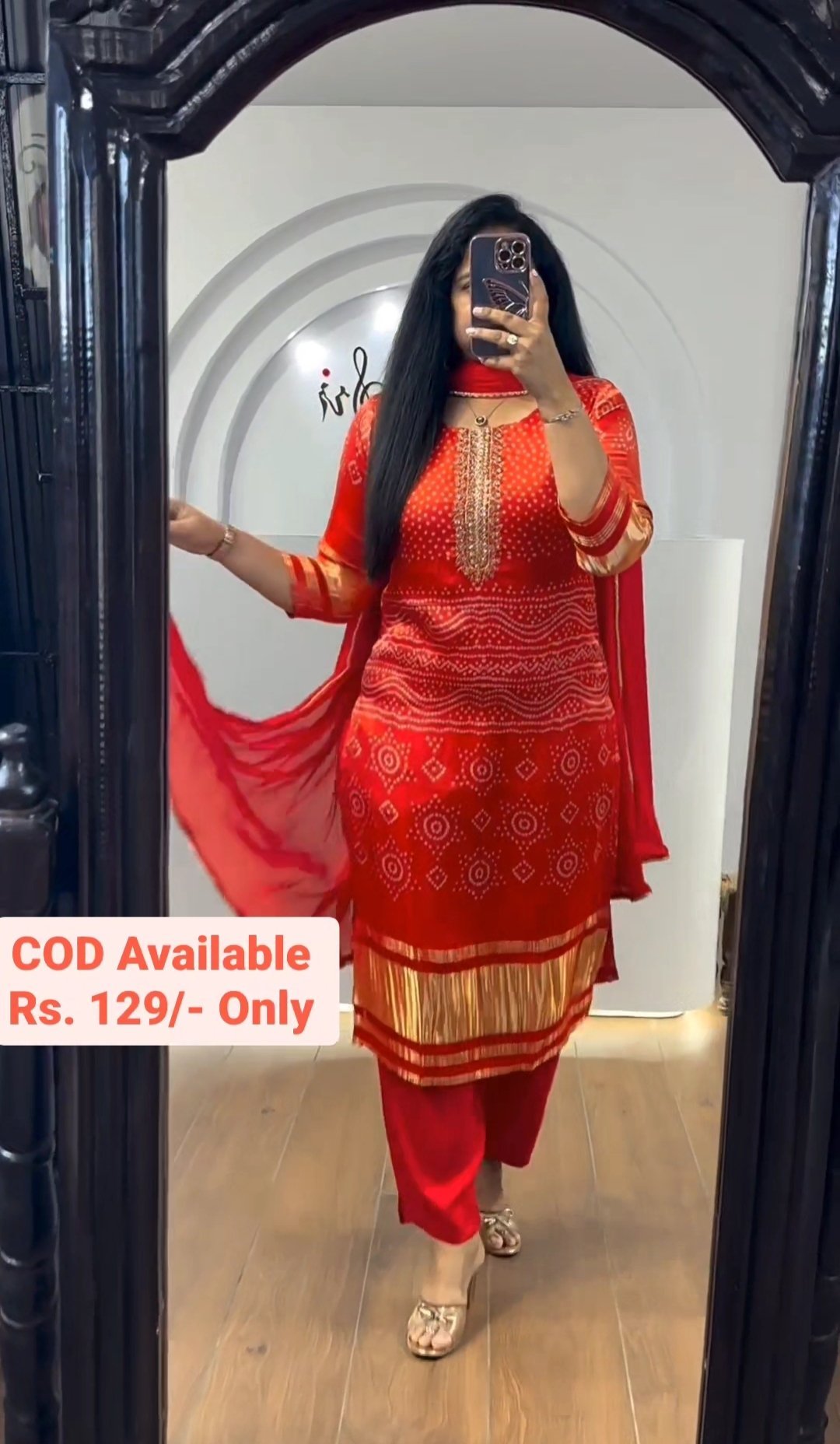 Trendy Bandhani Block Print Red Salwar Suit On Mega Sale