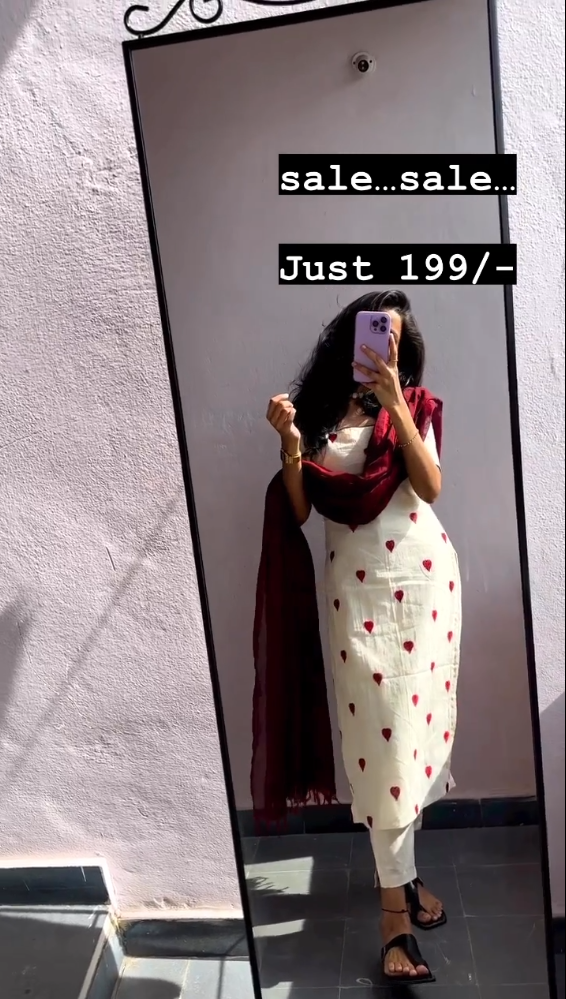 White And Red Cotton Suit Set quantity